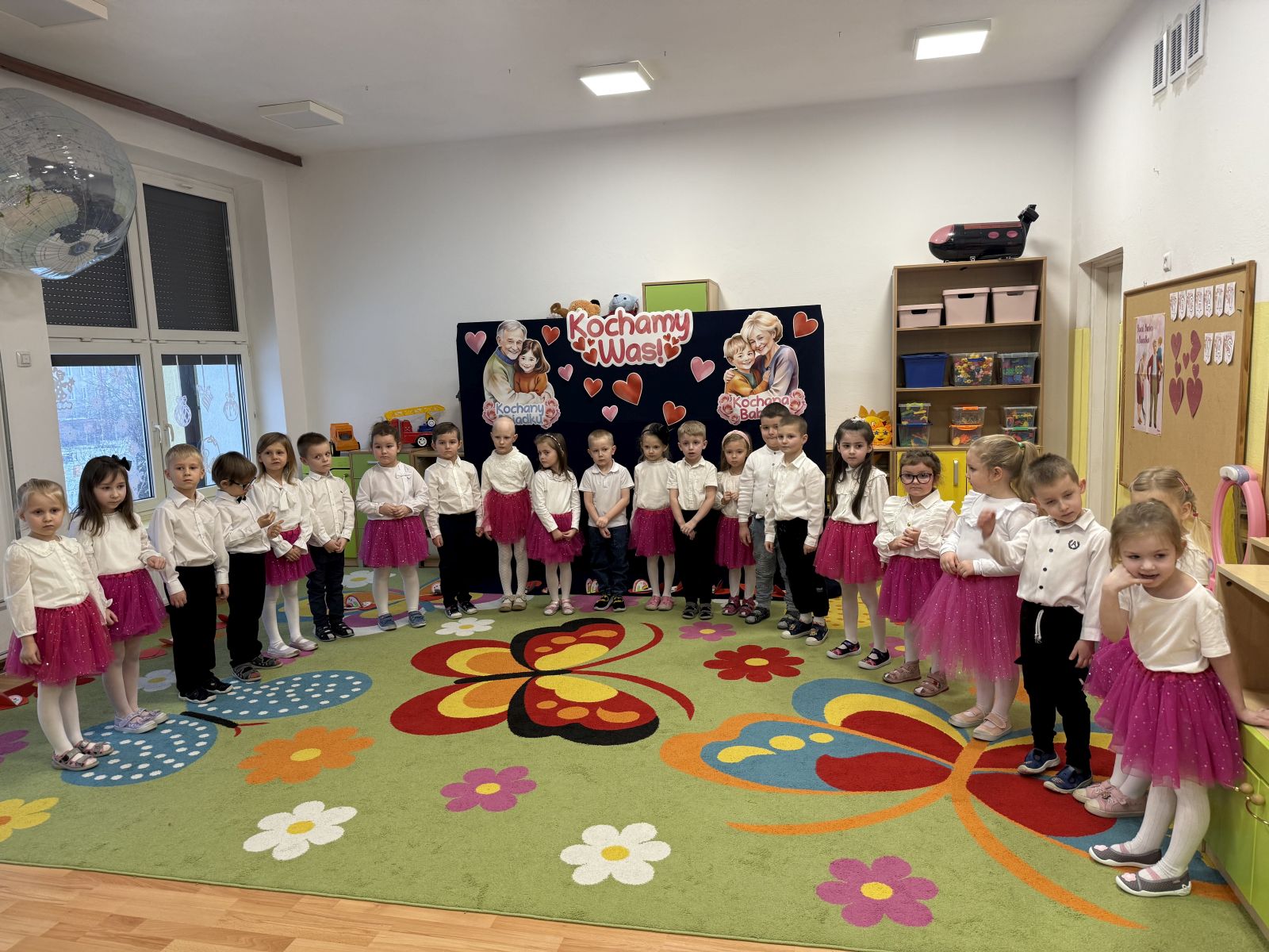 Grupa III „Motylki” zaprezentowała program artystyczny składający się z wierszy oraz piosenek: „Dla babci i dziadka prześlę dziś buziaczka:  oraz „Babcia i Dziadek – nasze skarby”.  Dzieci zaprezentowały również taniec do utworu „Rock and roll dla babci i dziadka” oraz taniec z serduszkami do piosenki „Podzielone serce”. Po występie wręczyły gościom własnoręcznie wykonane upominki. Spotkanie przebiegło w bardzo miłej, rodzinnej atmosferze.