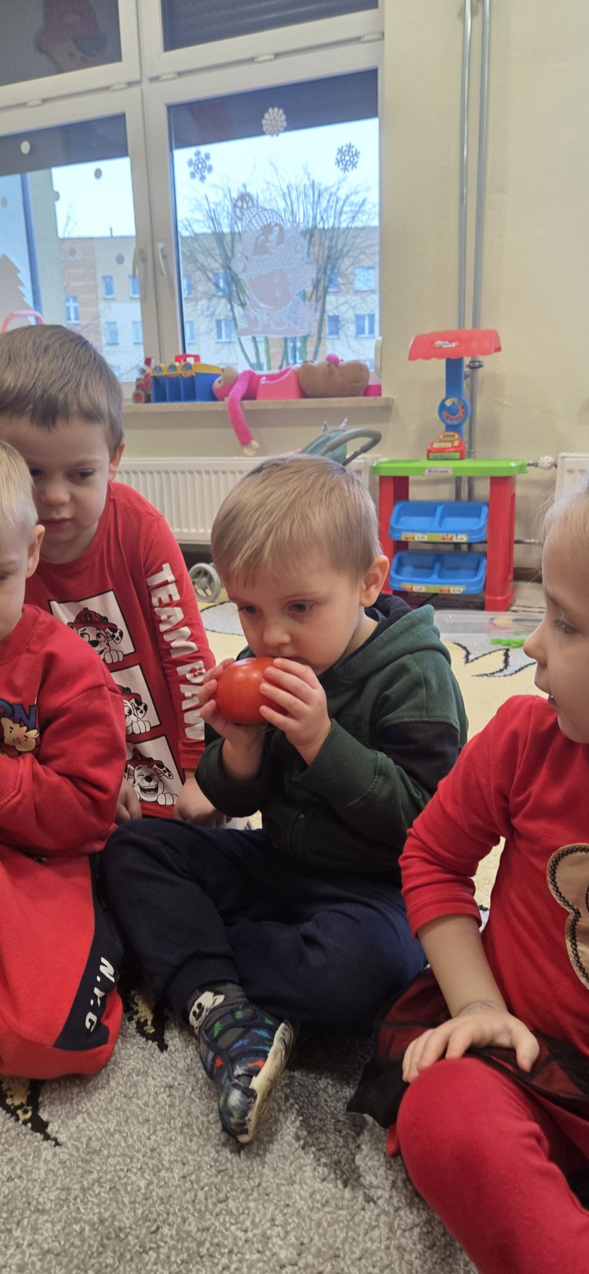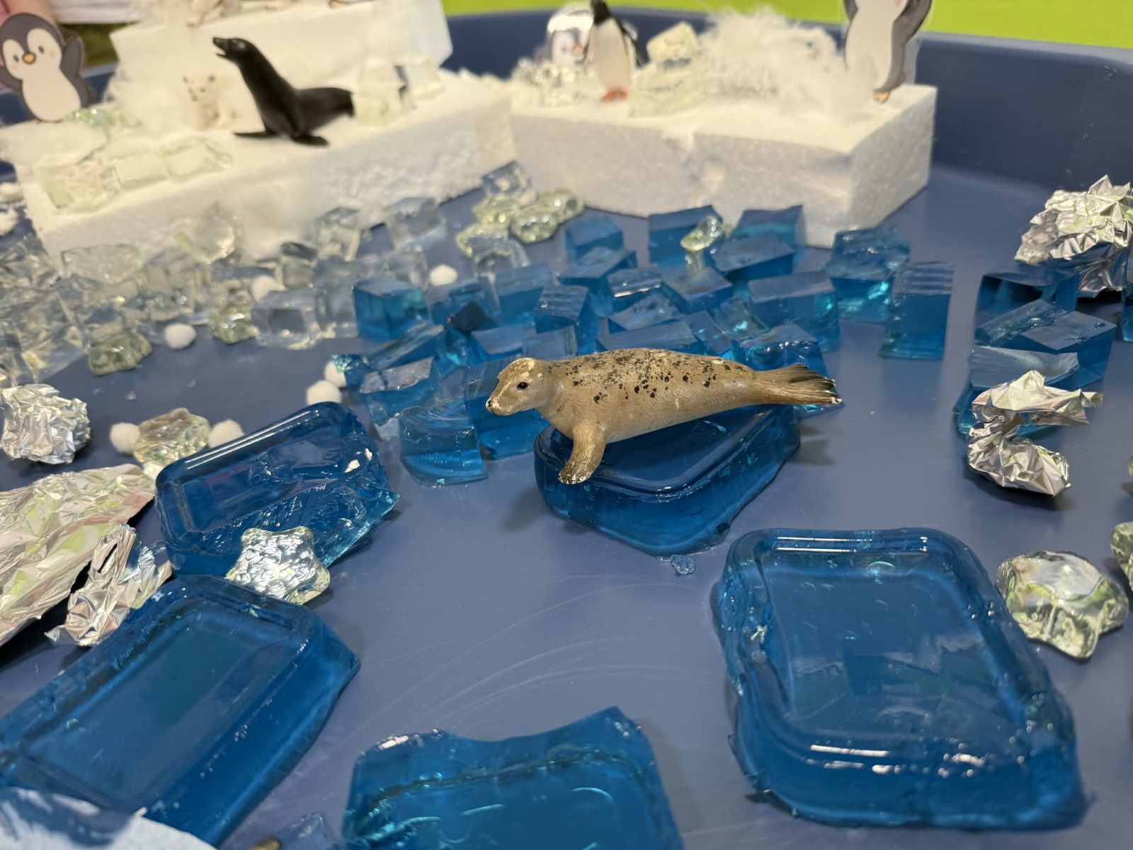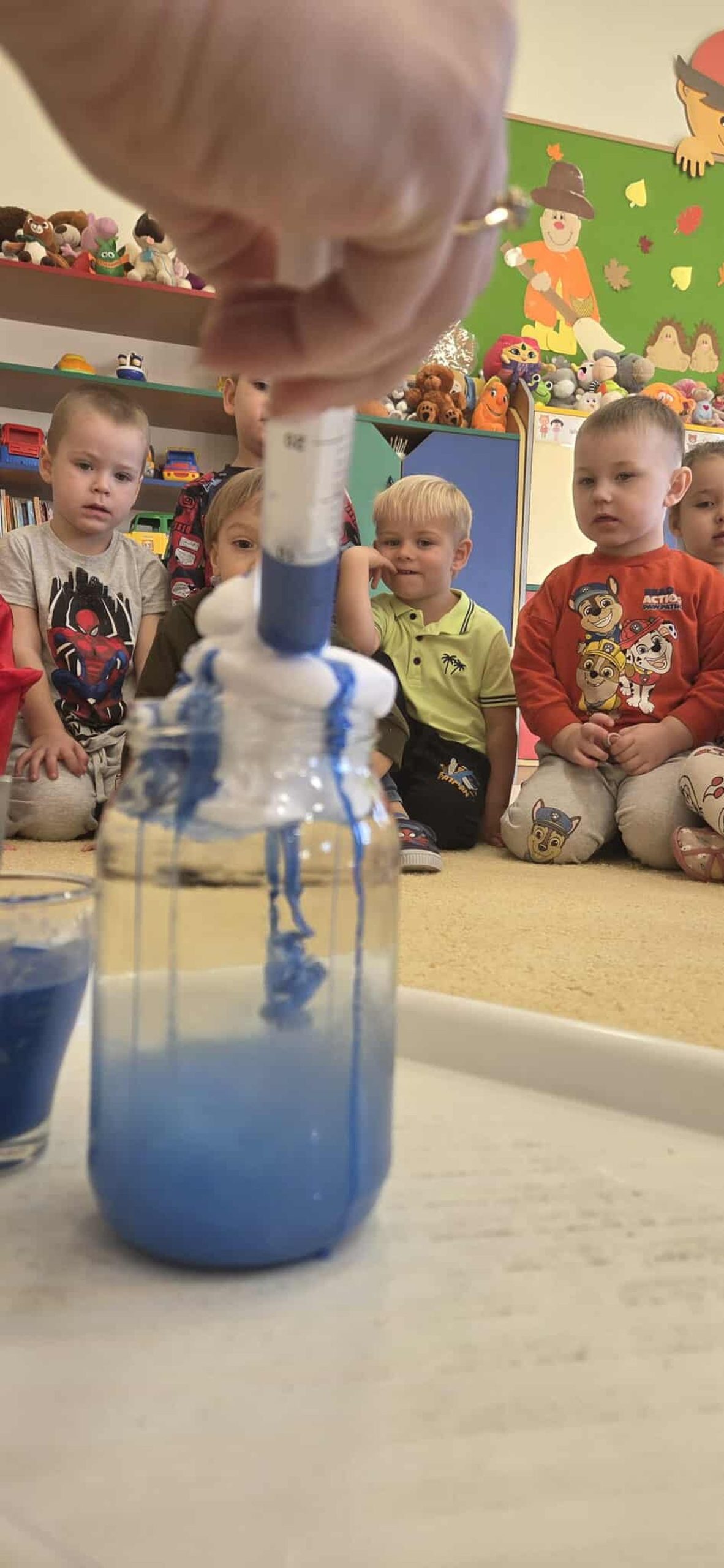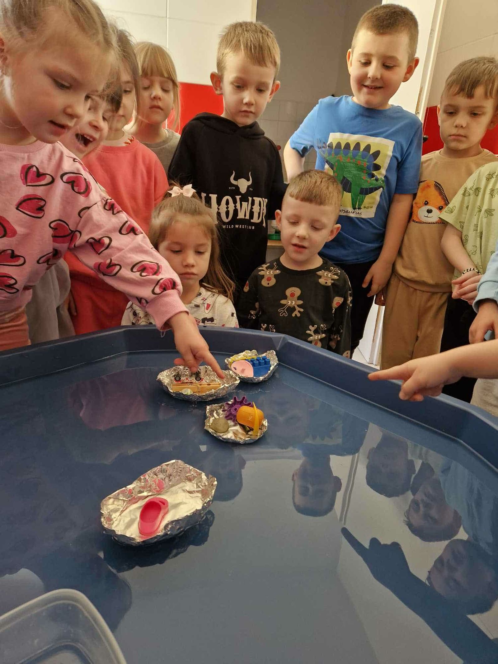 W trakcie zajęć dzieci w naszym przedszkolu mają możliwość swobodnego eksperymentowania z różnorodnymi materiałami, takimi jak: piasek kinetyczny, masa solna, galaretka, ryż, kasza, woda, lód, śnieg, pianka do golenia czy naturalne materiały (liście, szyszki, kamienie). Dzieci ugniatają, przesypują, przelewają, mieszają i porównują struktury oraz temperaturę.