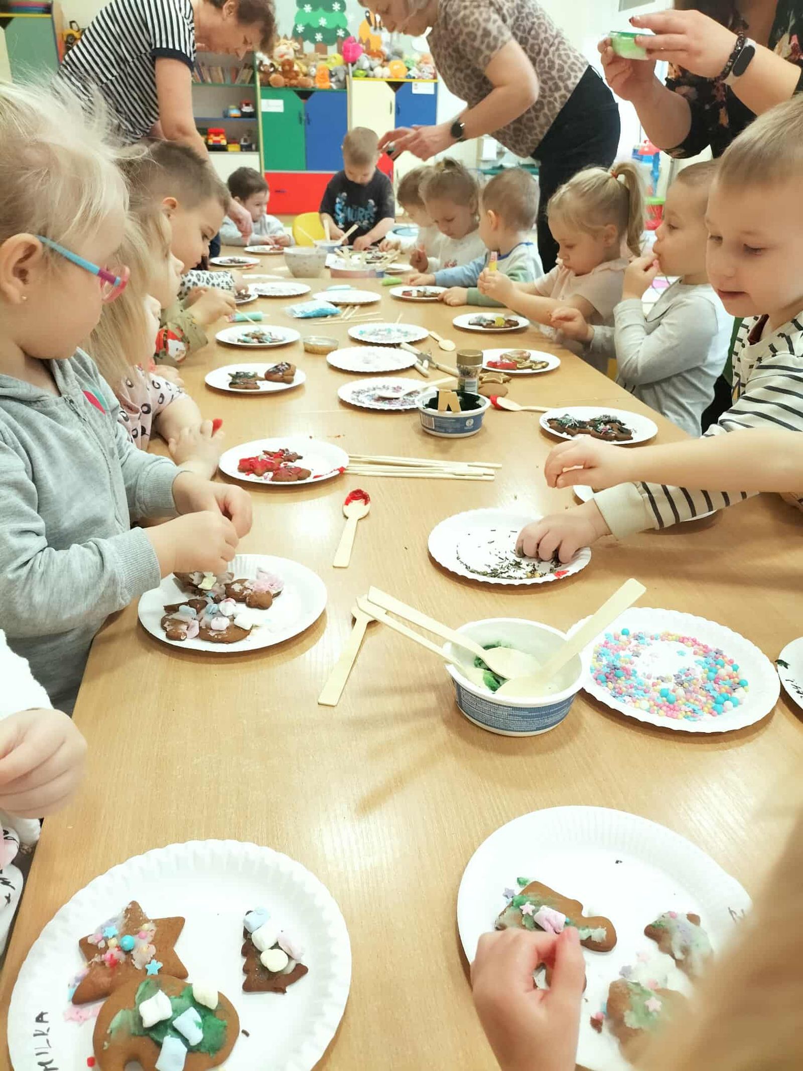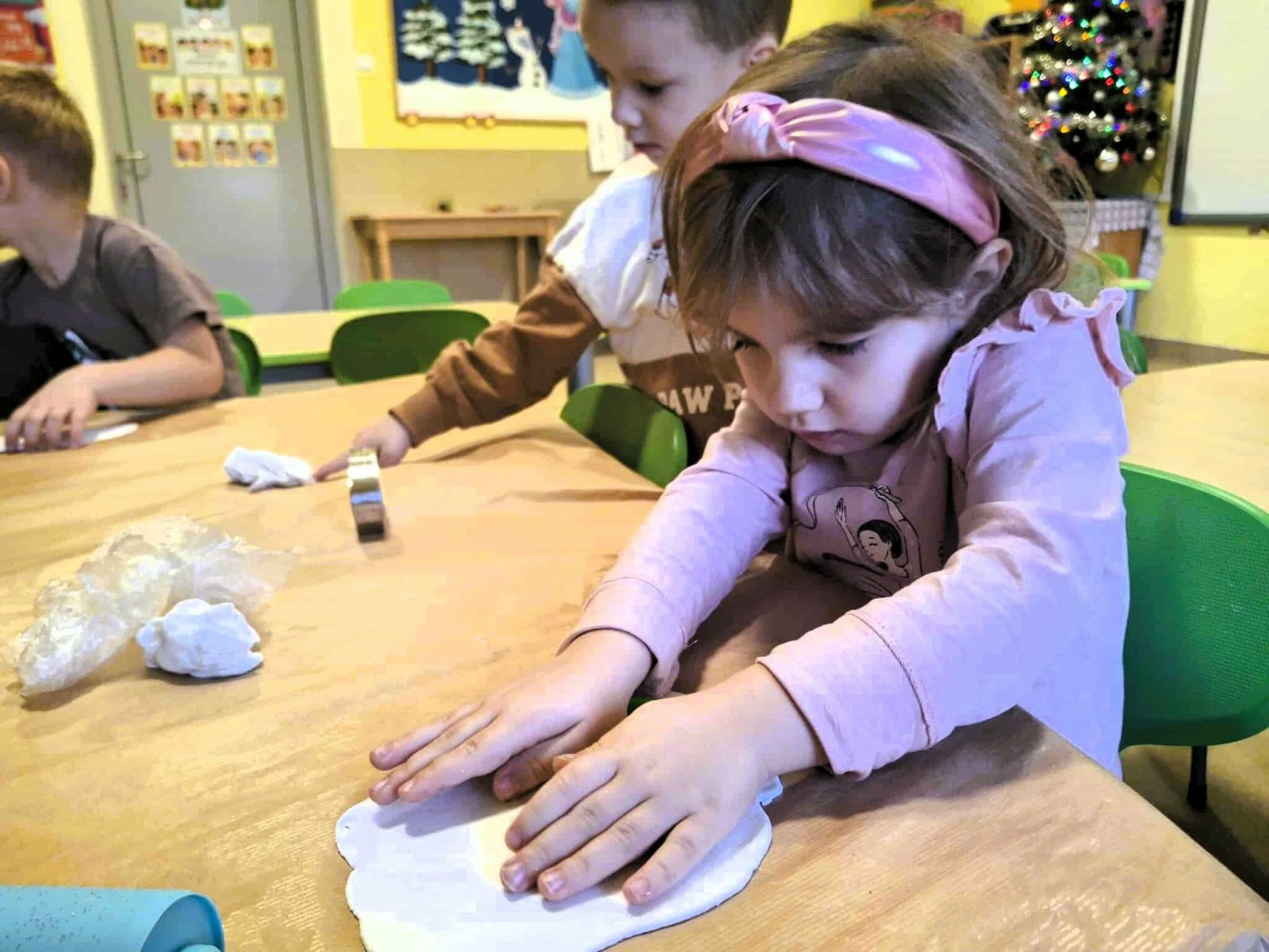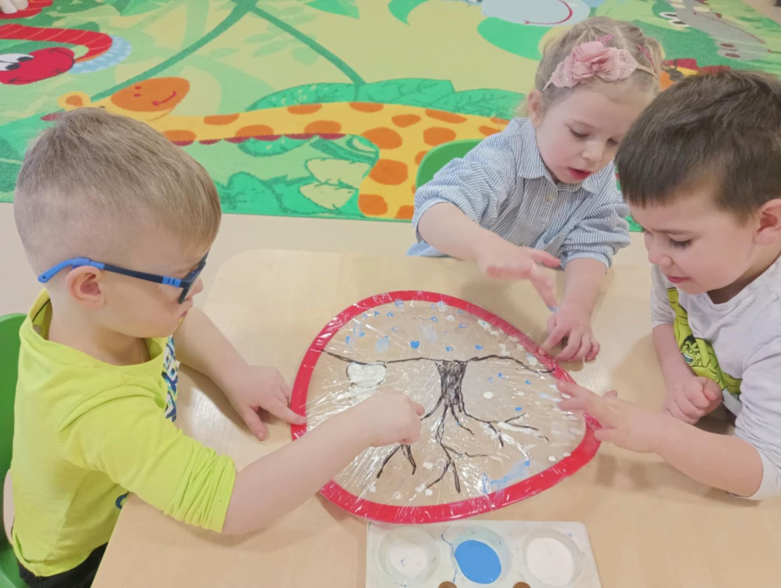 Podczas zajęć dzieci uczą się także współpracy, cierpliwości oraz bezpiecznego korzystania z różnorodnych materiałów. Atmosfera sprzyja swobodnej ekspresji, ciekawości poznawczej i radości odkrywania.