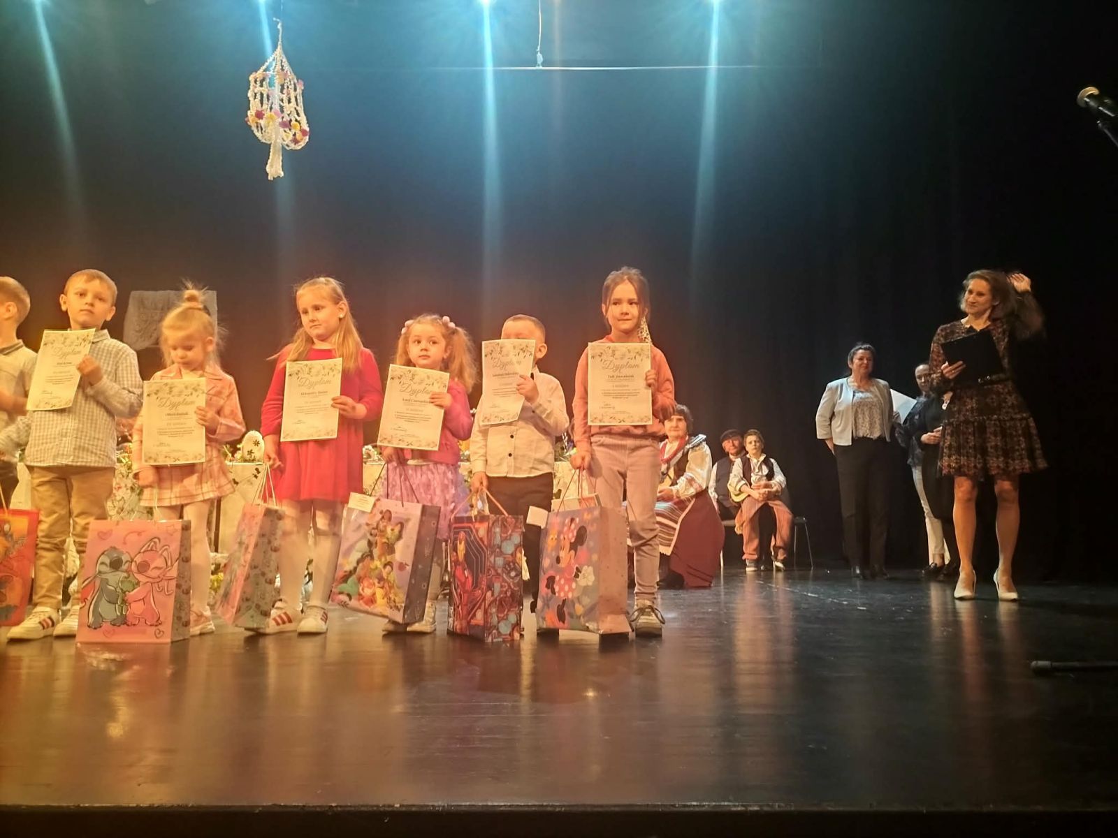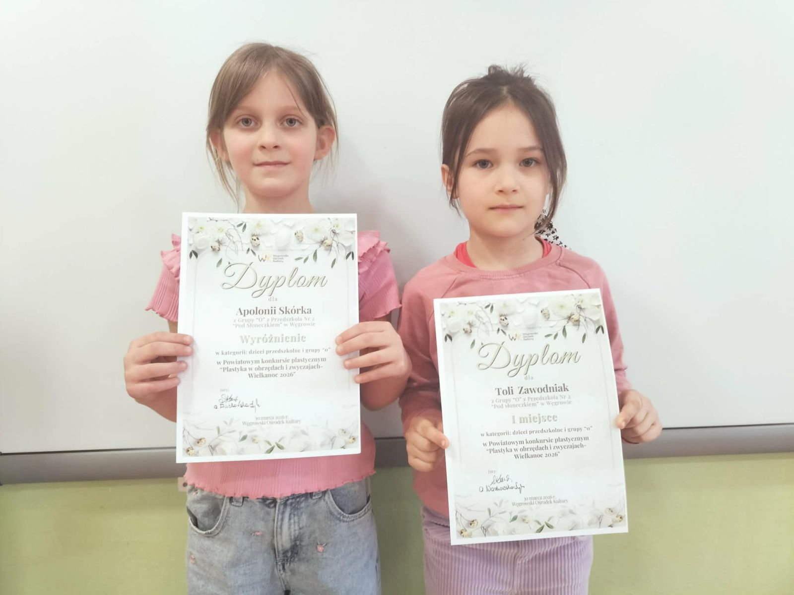 30.03.2026 r. grupa VI „Liski” wybrała się do Węgrowskiego Ośrodka Kultury na występy Zespołu Ludowego Węgrowianie pt. Śniadanie Wielkanocne. Dzieci z zaciekawieniem wysłuchały staropolskich obrzędów i zwyczajów świątecznych. Po części artystycznej nastąpiło uroczyste wręczenie nagród w konkursie organizowanym przez WOK „Plastyka w obrzędach i zwyczajach – Wielkanoc 2026”. Dwie dziewczynki z naszej grupy zostały nagrodzone w konkursie.